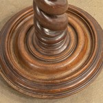 Подставка представлена в виде соломоновой колонны, или торсады, резного мотива, позаимствованного в архитектуре. Его легендарное происхождение — колонны, которые, как говорят, были привезены из великого храма Соломона в Иерусалиме для строительства склепа гробницы Святого Петра в Риме. Несмотря на миниатюрные размеры, подставка поражает добротностью и основательностью. Лаконизм декоративного убранства позволяет насладиться природной красотой текстуры ореха, а конструкция позволит легко найти применение в быту. Очаровательную подставку можно интегрировать в любой интерьер вне зависимости от стилевого решения. Подставка датирована 1850-ми гг.