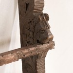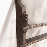 В нашем салоне старинной мебели вы можете купить антикварную полку для тарелок авторства нидерландских мастеров, выполненную из дуба и украшенную орнаментальной резьбой. По своему стилистическому направлению полка тяготеет к эстетике неоренессанса. Подобные полки стали появляться вместе с развитием художественных ремесел и предназначались для демонстрации особо значимых изделий из фарфора и фаянса. Представленная двухъярусная полочка декорирована резным ритмичным орнаментом в виде листочков, пущенных по фасаду горизонтальных реек. Боковые устои трактованы волнообразными переходами, трактованными зооморфными гротесковыми мотивами. Полочка датирована 1880-ми гг.