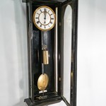 В нашем салоне старинной мебели вы можете купить антикварные настенные часы авторства немецких мастеров. Корпус часов выполнен из орехового массива, тонированного в глухой угольный оттенок. История настенных часов насчитывает много веков. Первые домашние часы стали появляться в начале XV века. Они, вероятно, изготавливались местными слесарями и оружейниками. После появления качающегося маятника часы стали более точными. Самые ранние часы из-за длинных маятников всегда были высоко приподняты над полом. Так появились первые настенные часы. В дальнейшем, по мере усовершенствования часовых механизмов, часы становились все легче, что позволило создавать модели настольных часов. Настенные часы из коллекции Alter Ego Home отличаются стилистической универсальностью, которая позволит вписать их в интерьер любой стилевой направленности. Часы трактованы футляром с единым объемом и распашной застекленной дверцей. Футляр фланкирован профилированными вертикальными устоями и увенчан фигурным фронтоном. В нижней части корпус часов уравновешен архитектоничной композицией с точеными завершениями. Часы отличаются тончайшей художественной проработанностью. Часы датированы 1850-ми гг.
