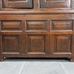 В нашем салоне старинной мебели вы можете купить антикварный шкаф авторства английских мастеров, выполненный из дубового массива великолепного кофейного оттенка с градиентом. Стилистически шкаф отсылает к позднему Возрождению, орнаментальные особенности которого распространились на территории Англии через французские, немецкие и фламандские гравюры. Подобные предметы традиционно размещались в больших залах и столовых в конце 16 — начале 17 веков и содержали в себе сосуды для еды и питья. Однако нередки были случаи, когда подобные шкафы стояли в спальнях, где служили полками для другого домашнего инвентаря. Шкаф разделен на два объема, оснащенного вместительными полками. Филенки геометричного характера придают предмету дополнительную фактуру и характер. Шкаф датирован 1780-ми гг.