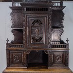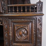 Антикварный буфет выполнен в 1850-х гг. во Франции из дуба богатого кофейного оттенка и украшен декоративным убранством. По стилистической принадлежности буфет изготовлен в стилистике, так называемой, «Скульптурной мебели», «Мебели с характером», или «Необретонской мебели».