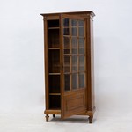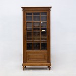 Антикварный книжный шкаф выполнен в Германии из ореха чайного оттенка. По стилистической принадлежности шкаф тяготеет к эстетике неоклассицизма. Неоклассицизм возник как реакция на частую смену стилей XIX века, что напрямую отражалось на мебельном убранстве. Желание найти опору в стремительно меняющемся мире, эстетизация прошлого привели к возвращению к классическим пропорциям, симметричным композициям, использованию античных элементов декора. Немецкие мастера по-своему осмысляли стилевые веяния. Осваивая классицистические формы, немецкие столяры оперировали привычными для них материалами и техническими приемами. Шкаф оснащен распашной застекленной дверцей, разделенной на симметричные квадраты деревянными планками. Зеркала имеют фацеты. Шкаф увенчивает гладкий карниз. Изящные балясинообразные ножки создают эффект парения. Шкаф сдержан и элегантен. Благодаря сдержанному декору он может вписаться в интерьер любой стилевой направленности. Шкаф датирован 1860-ми гг.