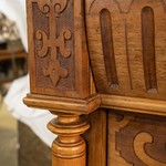 В нашем салоне старинной мебели вы можете купить антикварный комод из ореха медового оттенка авторства немецких мастеров. По стилистической принадлежности комод эклектичен и тяготеет к мебельной эстетике конца XIX столетия, когда мебельные формы, ассимилируя исторические направления, стремились не только к подражанию ушедших стилям, но и к созданию новых форм. Конструкция комода подчинена декоративному началу и отличается изяществом отделки. Комод оснащен четырьмя выдвижными ящиками с фигурной накладной резьбой в стиле аграф. Скошенный ящик в верхней части декорирован ритмичной рельефной резьбой и дополнен декоративными ручками и замочными накладками. Точеные колонны, фланкирующие боковые ящики придают предмету упорядоченность и архитектоничеую строгость. Комод датирован 1890-ми гг.