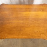 В нашем салоне старинной мебели вы можете купить антикварный столик, выполненный английскими мастерами из ореха насыщенного медового оттенка. Плавные, текучие формы предмета, слегка изогнутые сужающиеся к низу ножки отсылают к стилистике рококо в очень сдержанном проявлении. Стол имеет прямоугольную фигурную столешницу и гладкое неширокое подстолье с выдвижным ящичком. Стол отличает удобство и функциональность. Подобный мебельный тип - кофейный столик - появился в викторианской Англии в XIX веке. Его создателем принято считать архитектора-мебельщика Эдварда Уильяма Годвина. Ранее он являлся неотъемлемым атрибутом аристократической обстановки. Позже, когда производство кофейных столиков было налажено, он прочно вошел в повседневную обстановку английского среднего класса. Кофейные столики довольно быстро стали популярны среди мебельных мастеров стран Европы. Столик датирован 1930-х гг.