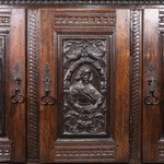 Антикварный шкаф для посуды с резными композициями 1720-х гг.