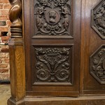В нашем салоне старинной мебели вы можете купить антикварный шкаф авторства немецких мастеров, выполненный из дуба темного колорита. Шкаф величественен и наполнен молчаливой красотой. По стилистической принадлежности шкаф тяготеет к эстетике неоренессанса, получившей широкое распространение в 50-80-е гг. XIX столетия в Европе. Именно в этот период, во многом благодаря романтической литературе - произведениям П. Мериме, А.Дюма, В. Скотта и др. - возникает повсеместное увлечение эпохой Возрождения. Гуманистическое мировоззрение, торжество земного бытия - типичные черты эпохи Ренессанса, которые вдохновляли мастеров XIX столетия. Человек, признанный венцом творения, становится главным сюжетом литературы, живописи, зачастую его фигура размещается на предметах мебели. Шкаф из коллекции Alter Ego Home выполнен в спокойных уравновешенных пропорциях в рамках строго линейной композиции. Мастера талантливо обыграли естественный цвет и текстуру древесины дуба. Шкаф разделен на симметричные вертикали, с массивными распашными дверцами, украшенными резными композициями с изображением фантастических существ, зооморфных персонажей, маскаронов и антропоморфных мотивов. Полый центральный объем с резными колоннами предполагает безопасное хранение и демонстрацию лучших образцов коллекции хозяина, а фланирующие предмет соломоновы колонны придают предмету нарядность и динамику. Шкаф способен привнести в интерьер любой стилевой направленности дух романтизма. Шкаф датирован 1900-ми гг.