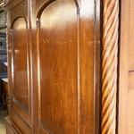 В нашем салоне старинной мебели вы можете купить антикварный шкаф авторства английских мастеров, выполненный из дубового массива богатого коньячного оттенка с градиентом. По стилистической принадлежности антикварный шкаф эклектичен и включает строгую классицистическую архитектонику и барочное оформление. Шкаф решен в виде двухчастного объема. За двумя массивными распашными дверцами скрыт ряд равновеликих полок. Дверцы фланкированы резными соломоновыми колоннами. Нижний ярус оснащен четырьмя выдвижными ящиками. Дубовый шкаф отличается добротностью, благородством и высоким мастерством исполнения. Гладкие поверхности дверных створок и боковин подчеркивают природную красоту древесной текстуры. Антикварный шкаф из коллекции старинной мебели Alter Ego Home датирован 1820-ми гг.