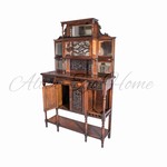 Многоярусная витрина сочетает в себе ясные пропорции, тонкие точенные детали и обильный резной декор.