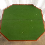 В нашем салоне антиквариата вы можете купить антикварный столик-консоль авторства английских мастеров, выполненный из махагони роскошного оттенка охры. По стилистической принадлежности столик является плодом национального творчества английских краснодеревцев и отличается неоклассическим решением. Столик оснащен гладкой шестиугольной в сложенном виде столешницей, дополненной зеленым сукном во внутренней части. Четыре квадратные в сечении ножки отличаются изяществом и легкостью. Столик датирован 1880-ми гг.