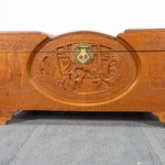 В нашем салоне старинной мебели вы можете приобрести антикварный сундук авторства китайских мастеров, выполненный из тика великолепного охристого оттенка. Предмет потрясает своей филигранной резьбой, складывающейся в завершенные сюжетные композиции. Резьба по дереву в Китае начала развиваться еще во II тысячелетии до н. э., однако популярность этот вид искусства обрел лишь в XIV веке во время правления династии Мин. Резьбой украшаются не только дома, дворцы и храмы, но и предметы мебели. Техника резьбы столь изысканна, столь изящна и ажурна, что вызывает ассоциации с лучшими образцами ювелирного искусства. Причем китайские мастера не просто вырезают узоры, они создают уникальные картины от самых маленьких размеров до гигантских панно.