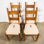 Комплект из четырех винтажных стульев авторства нидерландских мастеров выполнен из дуба чайного оттенка с градиентом. Комплект является плодом национального творчества нидерландских мастеров и отличается строгостью и лаконичностью.