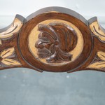 Антикварное курульное кресло выполнено итальянскими мастерами из ореха насыщенного шоколадного оттенка с градиентом и красивой природной текстурой. Традиционная форма курульного кресла пришла из Древнего Рима, где оно считалось почетным местом, на котором прежде восседали цари, а после них консул, претор и эдил. В последствии курульное кресло использовалось в различных культурах. Новое прочтение курульное кресло получило в XIX столетии в эпоху Романтизма. Кресло трактовано Х-образной конструкцией с удобным сиденьем, затянутым кожей в тон древесине, и фигурной планкой на спинке. Центральный объем спинки декорирован резным медальоном контрастно тонированной древесины. Поверхности несущей конструкции сплошь покрыты ритмичной резьбой, демонстрирующей глубину и красоту деревянной текстуры. Кресло имеет величественный вид и может украсить собой как тематический, так и современный интерьер. Кресло датировано 1960-ми гг.