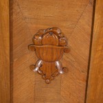 Антикварный шкаф авторства немецких мастеров выполнен из махагони насыщенного охристого оттенка. Стилистически шкаф является продуктом творческого переосмысления немецких мастеров проявлений историзма второй половины XIX столетия. Антикварный шкаф отвечает основным тенденциям в мебельном формообразовании середины столетия: утилитарная конструкция, минимум декора, при его наличии - полное подчинение конструктивному решению. Орнаментальное, эстетическое начало должно быть заложено в самой форме предмета. Шкаф трактован горизонтально ориентированным объемом с филёнчатыми распашными дверцами. Главным художественным акцентом являются массивные резные композиции в виде вазонов с плодами, украшающие дверцы. Цоколь снабжен устойчивыми ножками. Шкаф датирован 1880-ми гг.