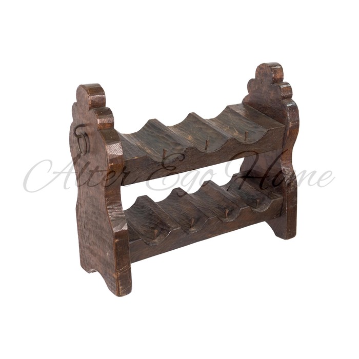 В нашем салоне антикварной мебели вы можете купить винтажную подставку для бутылок, выполненную из массива ореха, тонированного в глубокий каштановый оттенок. Конструктивно подставка имеет два яруса с гладкими полочками и фигурными стеночками для удобства расположения бутылок. При всей простоте конструкции предмет отличает художественная продуманность и качественное исполнение. Первоначально вариант подставки для винных бутылок был не более чем обыкновенным бытовым элементом, предметом мебели. Подставка для хранения выглядела как небольшой шифоньер с одним или несколькими рядами ячеек, поверхность которых размещалась под углом, чтобы бутылки вина имели необходимое положение. Со временем вариативность подставок увеличилась. Наличие подобных изделий в современном интерьере зачастую красноречиво свидетельствует о компетентности и глубокой заинтересованности человека в вопросах, касающихся винного этикета. Подставка из собрания Alter Ego Home датируется 1960-ми гг.