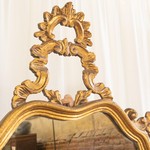 В нашем салоне старинной мебели вы можете купить винтажное зеркало авторства итальянских мастеров с резной деревянной золоченой рамой. Зеркальная рама имеет прямоугольную форму со скругленным фигурным навершием. Стилистически зеркало отсылает к стилю рококо, пришедшему из Франции XVIII столетия. Зеркалу присуще общее рокайльное настроение: обилие причудливой замысловатой резьбы, сплошное золочение деревянных поверхностей. Зеркалам в интерьерах всегда отводилось особое место, в совокупности с рамой они являлись акцентной, завершающей деталью. При этом они несли не только функциональную и декоративную нагрузку. В истории культуры зеркала традиционно наделялись двойственным смыслом: отражением физического и духовного мира. Зеркало датируется 1940-ми гг.