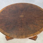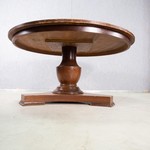В нашем салоне антикварной мебели вы можете купить винтажный кофейный стол авторства итальянских мастеров, выполненный из ореха богатого оттенка жженой умбры. Стилистически кофейный стол отсылает к историческим образцам имперского стиля ампир, первоначально возникшему во Франции во времена Наполеона Бонапарта. Ампир не являлся естественным продолжением стилевой эволюции предыдущих эпох - он насаждался искусственно, в подражание роскоши, некогда окружавшей римских императоров. Однако позаимствовав распространенную в начале XIX столетия мебельную форму, итальянские мастера доработали ее в минималистском ключе, свойственном мебели середины XX столетия. Стол трактован овальной столешницей на ножке в виде массивной балясины, переходящей в треножие с выемками в виде полумесяцев. Стол лишен декоративных элементов, что акцентирует внимание на красоте природной текстуры ореха. Винтажный кофейный стол из коллекции старинной мебели Alter Ego Home датирован 1950-ми гг.