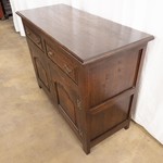 В нашем антикварном салоне вы можете купить винтажный полушкаф авторства английских мастеров, выполненный из дуба насыщенного оттенка чайного оттенка с градиентом. По стилистической принадлежности полушкаф тяготеет к эстетике бидермейера, популярного стиля, зародившегося в первой трети XIX столетия - стилю буржуазного искусства, для которого характерны упор на практичности, прочности, доброкачественности, удобстве и целесообразности. В мебели эпохи бидермейера можно обнаружить большую часть современных типов. Мебель впервые становится свободной от архитектурных форм и чужеродного декора. Критерием качественности мебели теперь считаются удобство форм и безукоризненная столярная работа. Антикварный полушкаф из коллекции Alter Ego Home решен в виде вертикально ориентированного объема с двумя филенчатыми распашными дверцами и верхними выдвижными ящиками. Гладкие, свободные от декора поверхности, демонстрируют роскошный природный рисунок древесины. Антикварный полушкаф датирован 1950-ми гг.